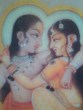 Krishna is the son or incarnation of Vishnu. Radha is considered an incarnation of Laksmi and the original goddess. Together, Krishna & Radha best display romantic love & esoteric love, love that has no distance. They are often depicted in pictures in luscious surroundings, in embrace &/or recline.