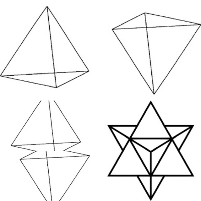 To activate your Merkabah pull the triangular tetrahedron shape down from the heart of source & up from the heart of earth to connect in the solar plexus. Extend the energy of the two interconnecting tetrahedrons out to cover your whole body … stating “activate Merkabah”.